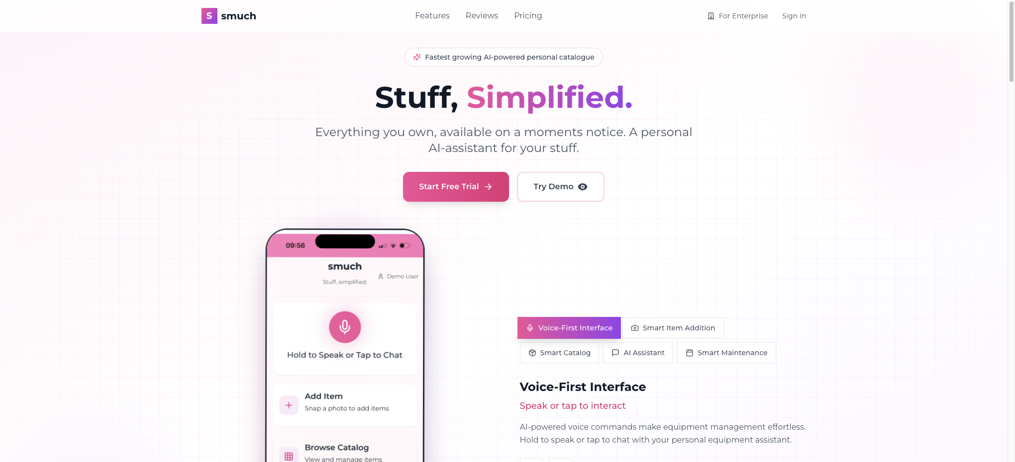 Powered by AI to quickly capture and catalogue everything you own. Need instructions? What model do I have? Why is it making that sound? What are the dimensions? Replacement parts and supplies, smuch has you covered in an instant.